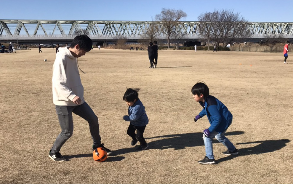休日は、5歳と8歳になった子どもたちと遊んでいます。どちらも男の子で、すごく元気でわんぱくなんです。土手で鬼ごっこをしたり、公園でキャッチボールをしたり。リコーリースでは、子どもを会社に連れてきて、「こども社員」としてお父さんお母さんの仕事を体験する「ファミリーデー」というイベントがあるんです。家族を大切にしながら働ける会社だと思います。