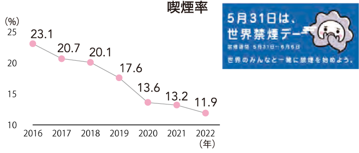| ⚪︎ | 禁煙率 | 12.6% | 11.1% | |||